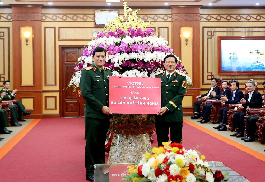 Lãnh đạo Tập đoàn Công nghiệp - Viễn thông Quân đội Viettel trao tặng 50 căn nhà tình nghĩa tặng cán bộ, chiến sĩ lực lượng vũ trang Quân khu 2