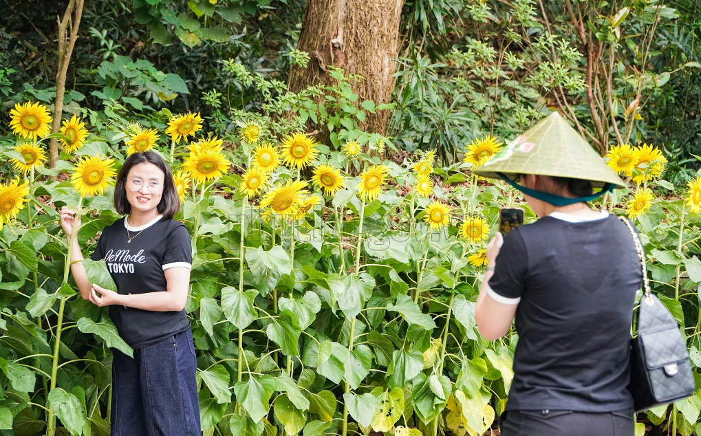 Con đường hoa hướng dương là điểm nhấn độc đáo tại sân Trung tâm lễ hội, thu hút du khách tham quan, chụp ảnh