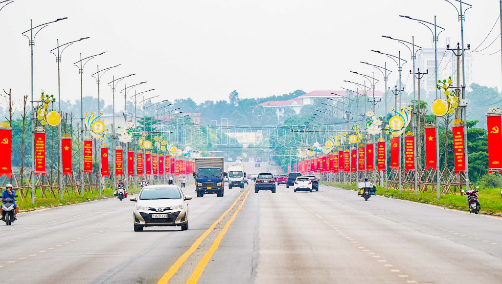 Sắc đỏ cờ hoa rực rỡ trên những tuyến phố trung tâm Phú Thọ