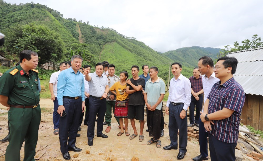 Phó Chủ tịch UBND tỉnh Nguyễn Huy Ngọc cùng Đoàn công tác thăm hỏi động viên hộ gia đình ở Bản Mỹ Á, xã Thu Cúc thuộc diện xóa nhà tạm (tháng 7/2025)