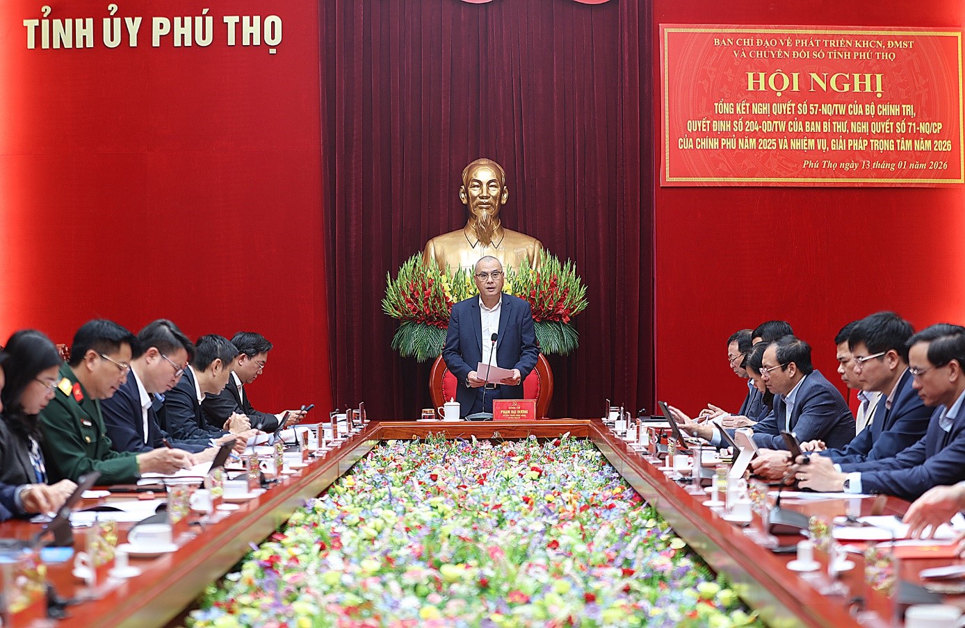 Phát biểu kết luận hội nghị, Bí thư Tỉnh ủy Phạm Đại Dương, Trưởng Ban Chỉ đạo về Phát triển khoa học, công nghệ, đổi mới sáng tạo và chuyển đổi số tỉnh nhấn mạnh, năm 2026 tỉnh xác định là năm tăng tốc triển khai Nghị quyết số 57-NQ/TW; phát huy tối đa lợi thế, tiềm năng để đưa Phú Thọ vào nhóm địa phương tiên phong về phát triển khoa học, công nghệ, đổi mới sáng tạo và chuyển đổi số, trở thành động lực then chốt của tăng trưởng 2 con số.