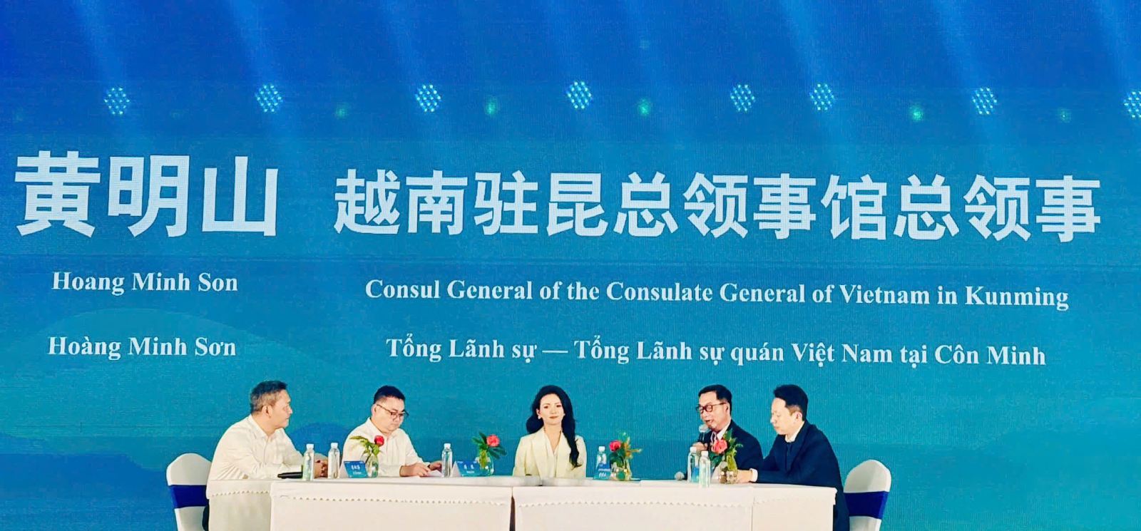 Ông Hoàng Minh Sơn, Tổng Lãnh sự quán Việt Nam tại Côn Minh (thứ hai, bên phải) phát biểu tại Hội đàm.