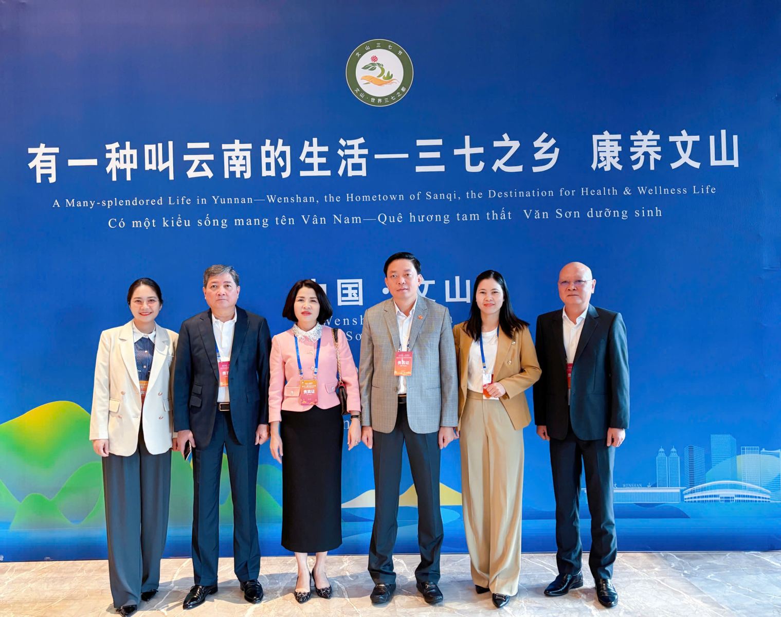 Cùng chiều ngày 7/11, Đoàn đại biểu Việt Nam đã tham dự buổi Hội đàm với chủ đề “Dưỡng sinh Văn Sơn - Cuộc hẹn “Hương’ Tam Thất”. Ông Hoàng Minh Sơn, Tổng Lãnh sự quán Việt Nam tại Côn Minh phát biểu: “Với truyền thống hợp tác lâu dài và sự tương đồng về điều kiện tự nhiên, văn hóa, cây tam thất sẽ trở thành biểu tượng mới cho hợp tác giữa Việt Nam và Trung Quốc trong lĩnh vực y dược và chăm sóc sức khỏe con người.”