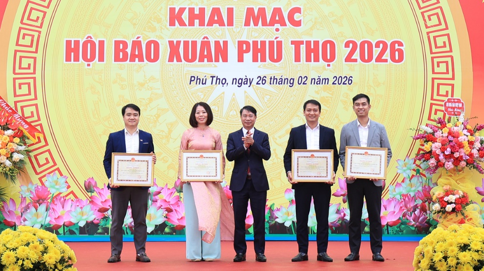 Nhân dịp này, Chủ tịch UBND tỉnh Phú Thọ đã tặng Bằng khen cho 4 nhóm tác giả có thành tích xuất sắc đoạt giải tại các giải báo chí Trung ương năm 2025.