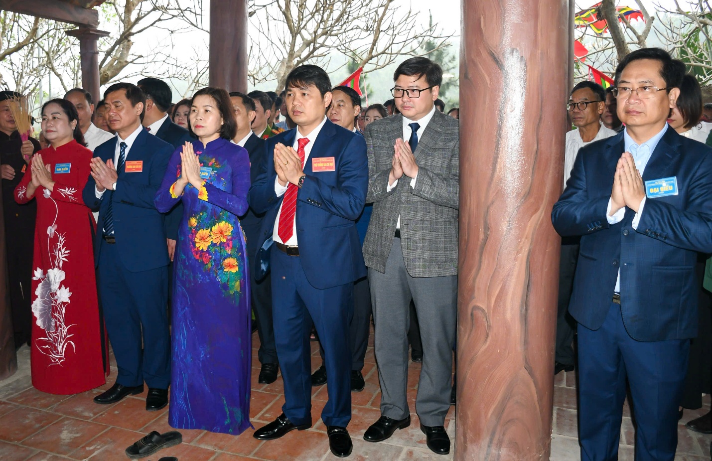 Phó Chủ tịch UBND tỉnh Phùng Thị Kim Nga cùng các đại biểu thực hiện nghi thức dâng hương