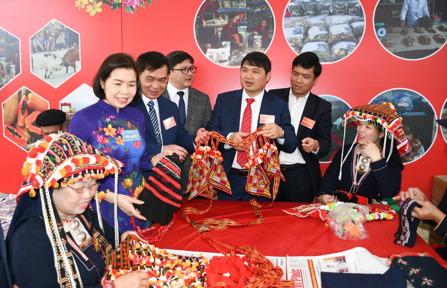 Phó Chủ tịch UBND tỉnh Phùng Thị Kim Nga cùng các đại biểu tham quan các gian trưng bày, giới thiệu sản phẩm