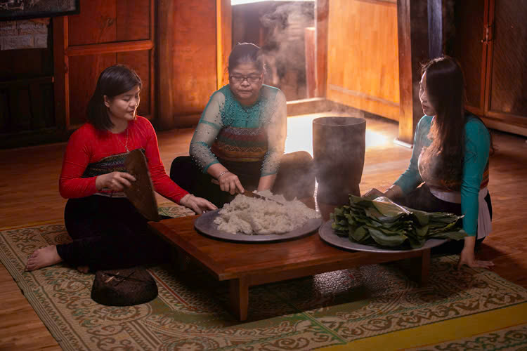 Lễ mừng cơm mới của bà con dân tộc Thái trong không gian nhà sàn ấm cúng, giới thiệu hương vị đặc trưng của ẩm thực Mai Châu đến du khách