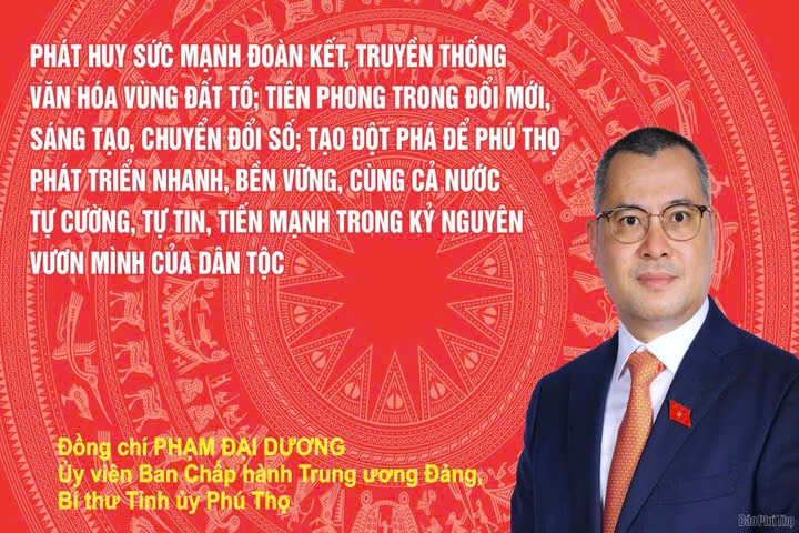 Phát huy sức mạnh đoàn kết, truyền thống văn hóa vùng Đất Tổ; tiên phong trong đổi mới, sáng tạo, chuyển đổi số; tạo đột phá để Phú Thọ phát triển nhanh, bền vững, cùng cả nước tự cường, tự tin, tiến mạnh trong kỷ nguyên vươn mình của dân tộc