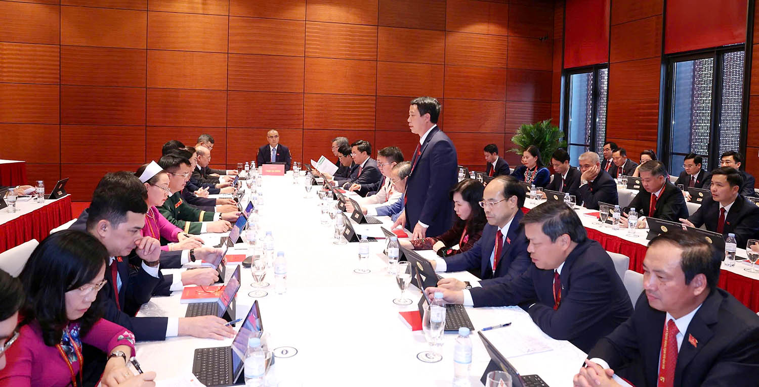 Đồng chí Phạm Đại Dương - Ủy viên Ban Chấp hành Trung ương Đảng, Bí thư Tỉnh ủy, Trưởng Đoàn đại biểu tỉnh Phú Thọ chủ trì phiên thảo luận tại tổ về các văn kiện trình Đại hội đại biểu toàn quốc lần thứ XIV của Đảng