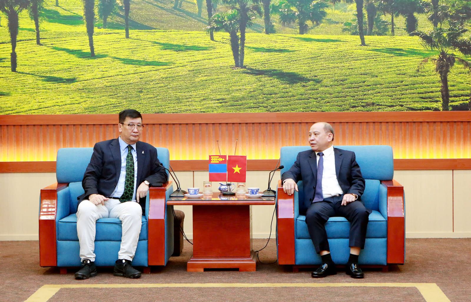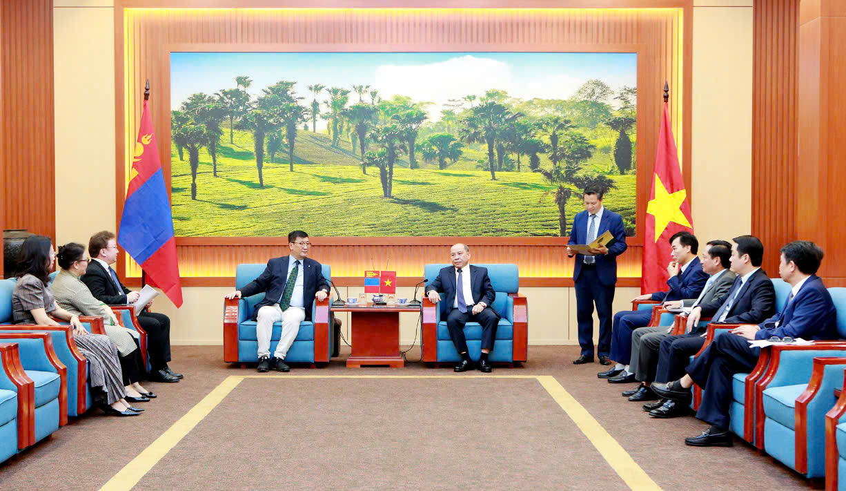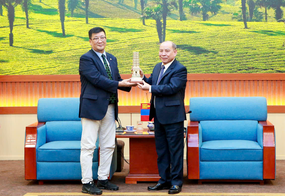 Đồng chí đã thông tin tới Ngài Đại sứ một số nét khái quát về tình hình phát triển kinh tế - xã hội của tỉnh Phú Thọ mới với lợi thế vị trí địa lý, hạ tầng giao thông thuận lợi và nguồn nhân lực dồi dào. Với những điều kiện đó, tỉnh Phú Thọ có nhiều tiềm năng để thu hút các doanh nghiệp nước ngoài, đặc biệt là các doanh nghiệp Mông Cổ, đầu tư vào các lĩnh vực như: công nghiệp chế biến, công nghiệp hỗ trợ, nông nghiệp công nghệ cao, logistics và thương mại dịch vụ. Bên cạnh đó, tỉnh Phú Thọ cũng sở hữu nhiều điểm đến du lịch nổi tiếng như: Khu Du lịch hồ Hòa Bình, các khu nghỉ dưỡng sinh thái, cùng các điểm du lịch sinh thái và nghỉ dưỡng tại khu vực Tam Đảo. Đây là những lợi thế quan trọng, tạo điều kiện thuận lợi để thúc đẩy hợp tác phát triển du lịch, tăng cường giao lưu văn hóa và kết nối Nhân dân giữa các địa phương của Việt Nam và Mông Cổ, góp phần làm sâu sắc hơn mối quan hệ hữu nghị giữa 2 bên.