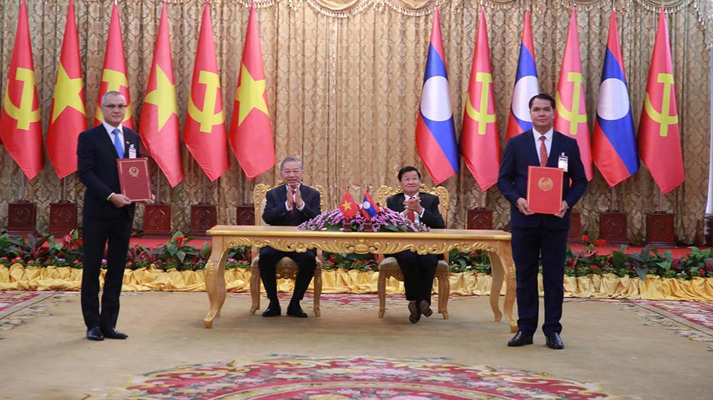 Nhận lời mời của Tổng Bí thư Ban Chấp hành Trung ương Đảng Nhân dân Cách mạng Lào, Chủ tịch nước Cộng hòa Dân chủ Nhân dân Lào Thongloun Sisoulith, Tổng Bí thư Ban Chấp hành Trung ương Đảng Cộng sản Việt Nam Tô Lâm đã dẫn đầu Đoàn đại biểu cấp cao Việt Nam thăm cấp Nhà nước tới nước Cộng hòa Dân chủ Nhân dân Lào từ ngày 5/2/2026.