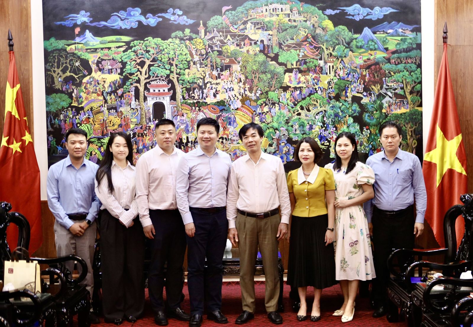 Lãnh đạo Sở Ngoại vụ và Tập đoàn Xây dựng Thái Bình Dương chụp ảnh lưu niệm.