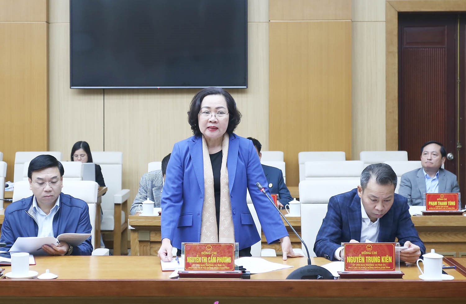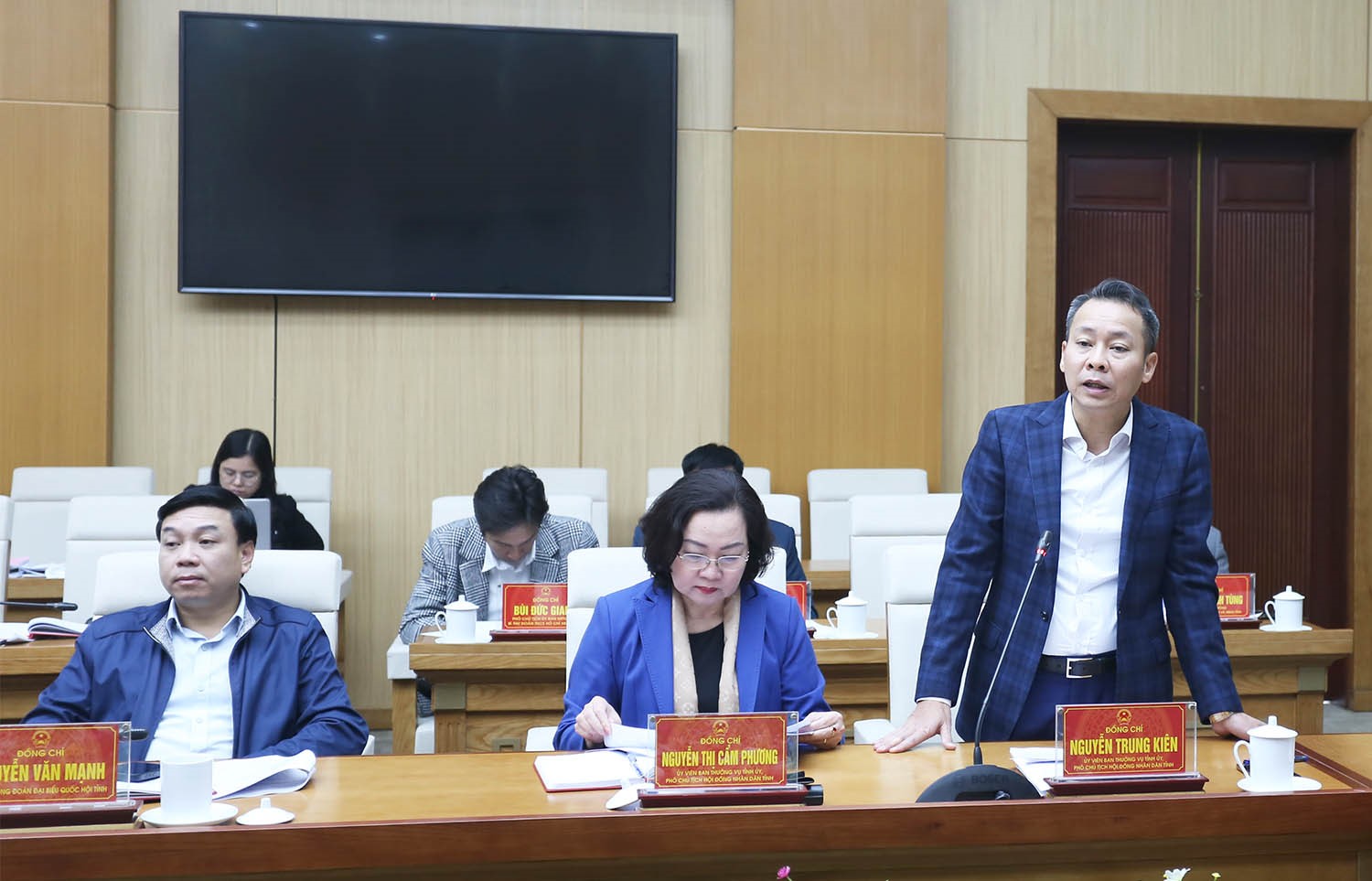 Tham dự cuộc họp có các đồng chí: Nguyễn Trung Kiên - Ủy viên Ban Thường vụ Tỉnh ủy, Phó Chủ tịch Thường trực HĐND tỉnh; Nguyễn Thị Cẩm Phương - Ủy viên Ban Thường vụ Tỉnh ủy, Phó Chủ tịch HĐND tỉnh; Phan Trọng Tấn - Ủy viên Ban Thường vụ Tỉnh ủy, Phó Chủ tịch UBND tỉnh; Đinh Công Sứ - Tỉnh ủy viên, Phó Chủ tịch UBND tỉnh; Nguyễn Khắc Hiếu - Tỉnh ủy viên, Phó Chủ tịch UBND tỉnh; các thành viên Ban Chỉ đạo công tác bầu cử tỉnh, Ủy ban bầu cử tỉnh, Tổ giúp việc Ủy ban bầu cử tỉnh.