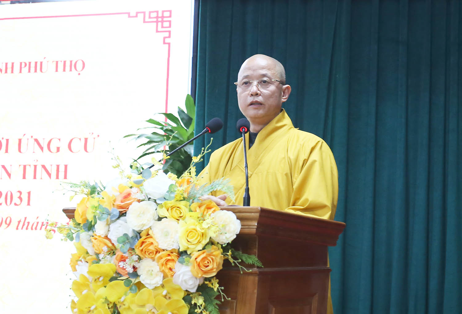 Trưởng Ban Trị sự Giáo hội Phật giáo Việt Nam tỉnh Nguyễn Tuấn Cường (Thượng tọa Thích Minh Nghiêm) trình bày chương trình hành động