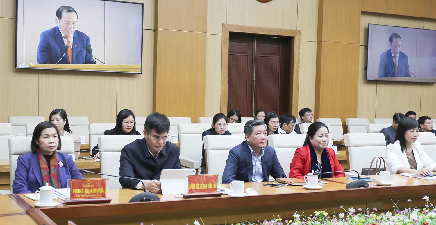 Đồng chí Trần Duy Đông - Phó Bí thư Tỉnh ủy, Chủ tịch UBND tỉnh chủ trì tại điểm cầu tỉnh Phú Thọ. Cùng dự có các đồng chí: Phùng Thị Kim Nga - Tỉnh ủy viên, Phó Chủ tịch UBND tỉnh; Dương Hoàng Hương - Ủy viên Ban Thường vụ Tỉnh ủy, Giám đốc Sở Văn hóa, Thể thao và Du lịch; lãnh đạo một số sở, ban, ngành.